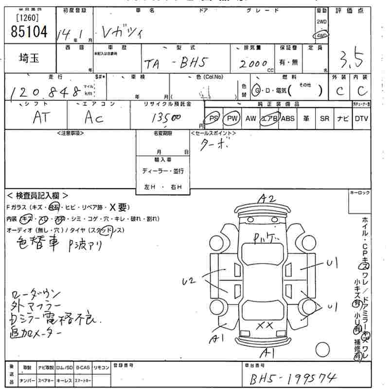 SUBARU LEGACY TOURING WAGON - лот 85104