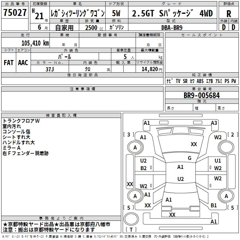 Все аукционы SUBARU LEGACY TOURING WAGON