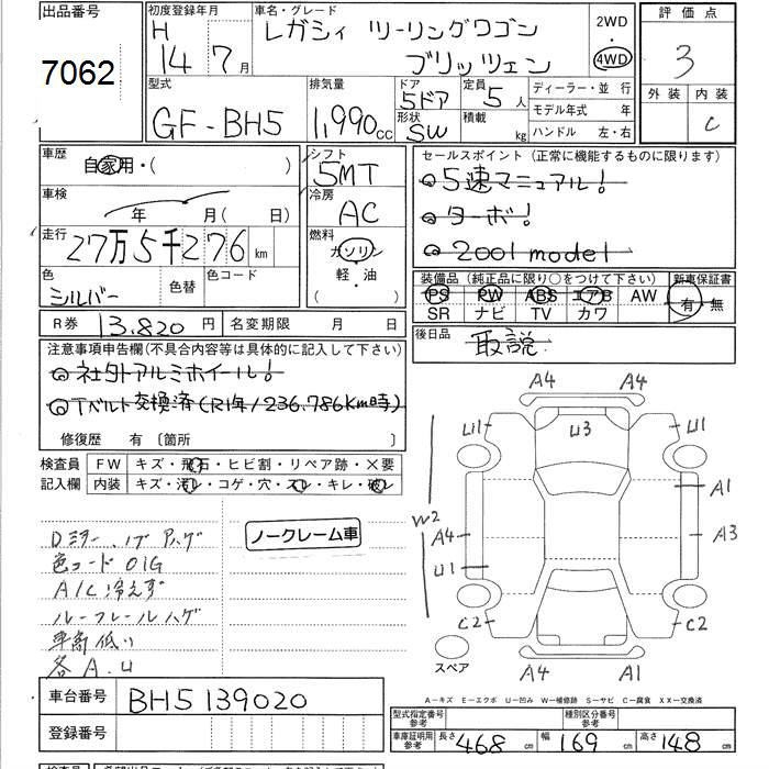 SUBARU LEGACY TOURING WAGON - лот 7062