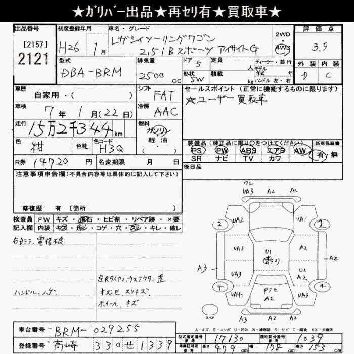 Все аукционы SUBARU LEGACY TOURING WAGON