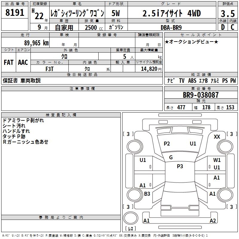 Все аукционы SUBARU LEGACY TOURING WAGON