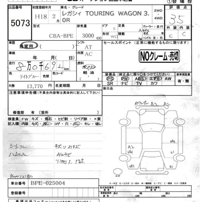 SUBARU LEGACY TOURING WAGON - лот 5073