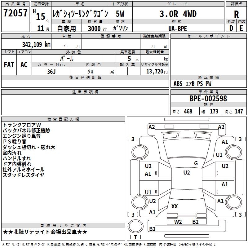 SUBARU LEGACY TOURING WAGON - лот 72057