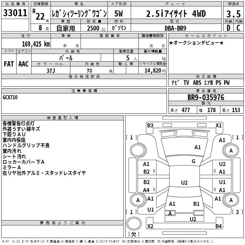 Все аукционы SUBARU LEGACY TOURING WAGON