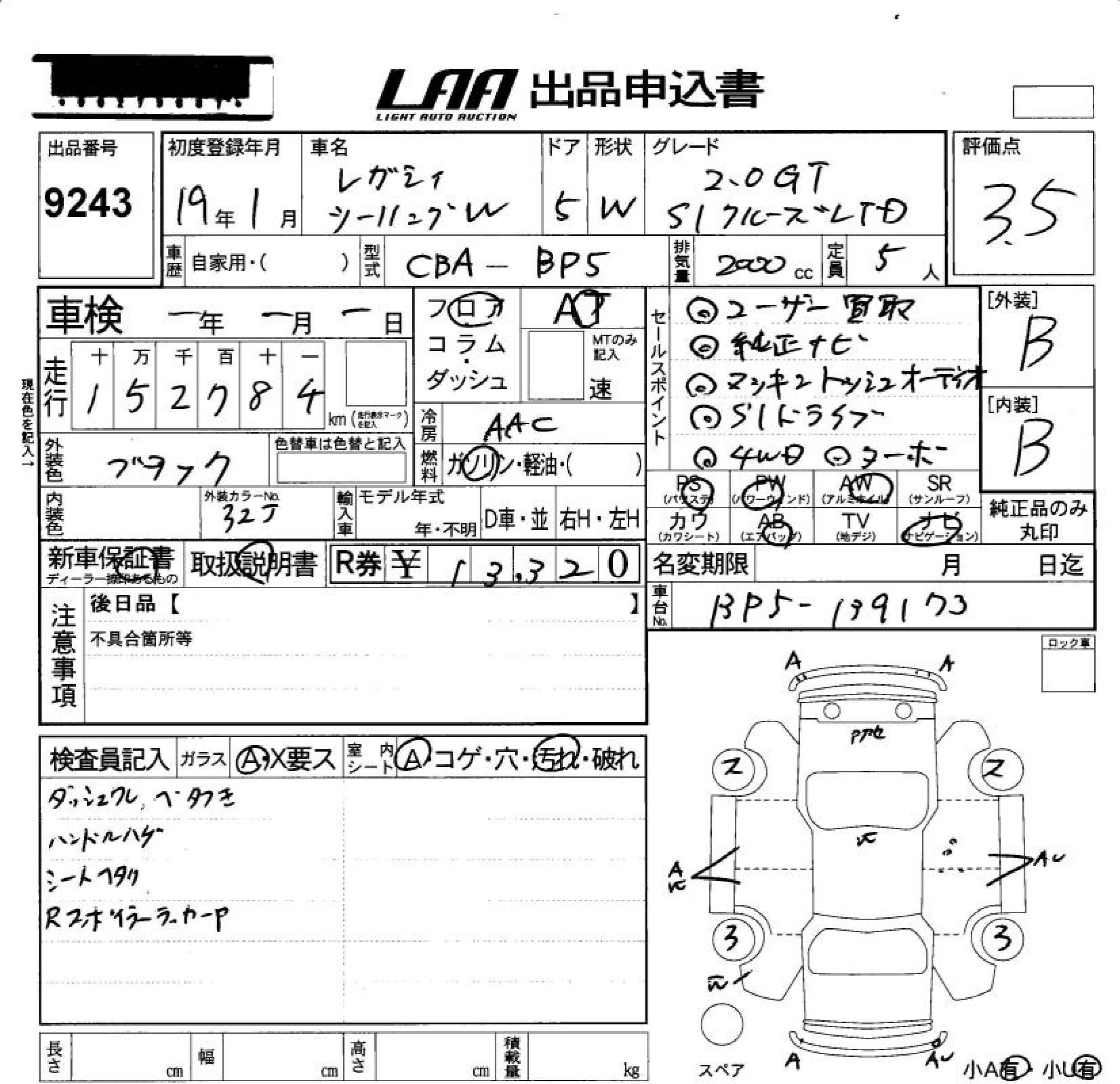 Все аукционы SUBARU LEGACY TOURING WAGON