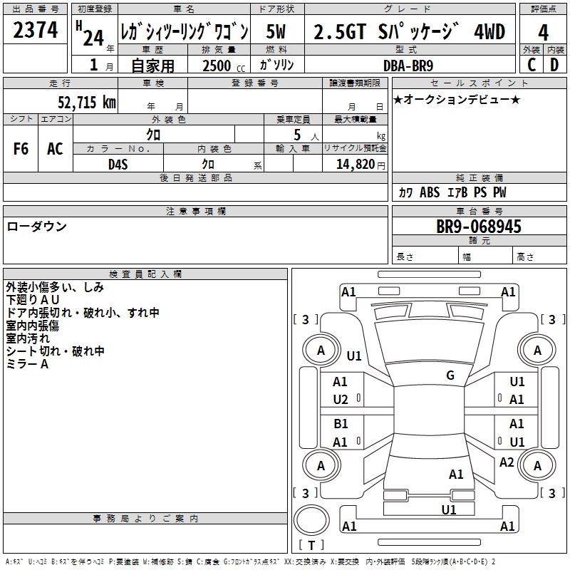 Все аукционы SUBARU LEGACY TOURING WAGON