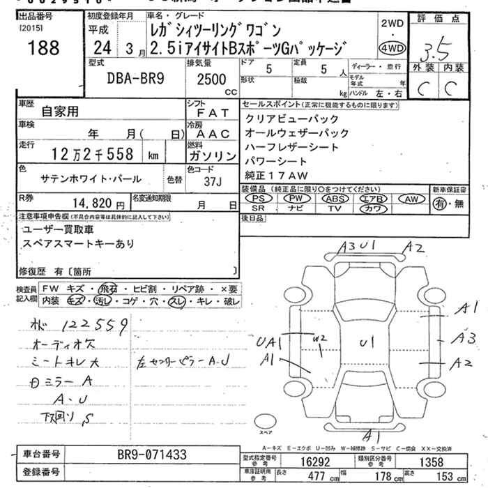 Все аукционы SUBARU LEGACY TOURING WAGON