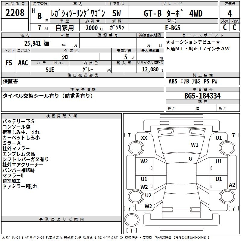 SUBARU LEGACY TOURING WAGON GT-B TURBO 4WD - лот 2208