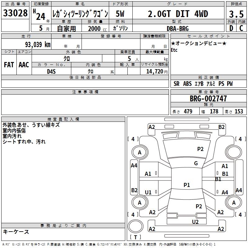 SUBARU LEGACY TOURING WAGON 2.0GT DIT 4WD - лот 33028