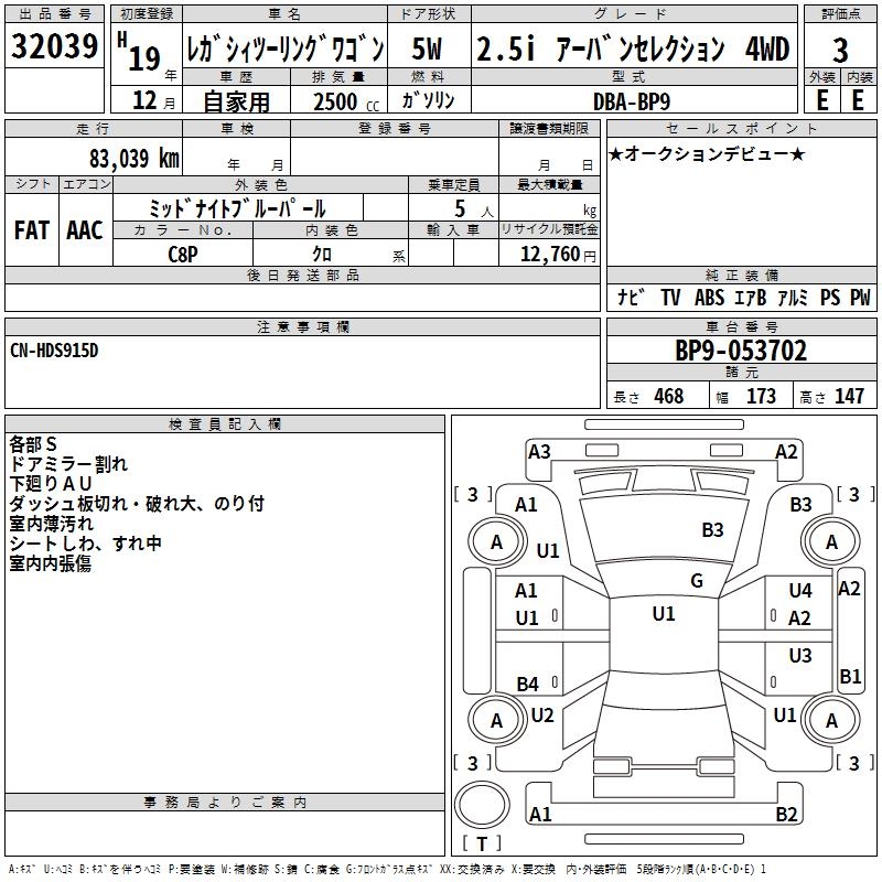 SUBARU LEGACY TOURING WAGON 2.5I URBAN SELECTION 4WD - лот 32039