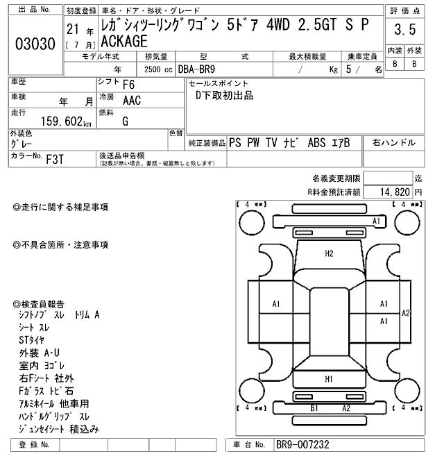 SUBARU LEGACY TOURING WAGON 2.5GT S PACKAGE - лот 3030