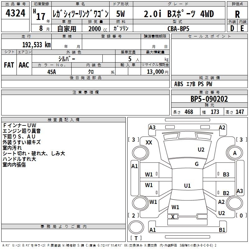 SUBARU LEGACY TOURING WAGON 2.0I B SPORT 4WD - лот 4324