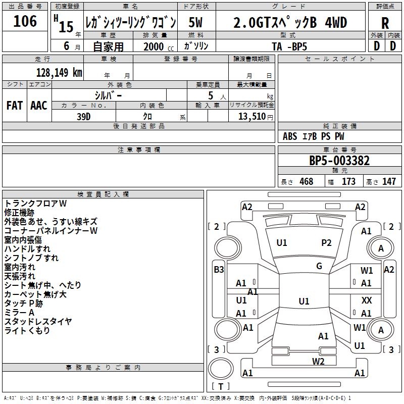 SUBARU LEGACY TOURING WAGON 2.0GT SPECIFICATIONS B 4WD - лот 106