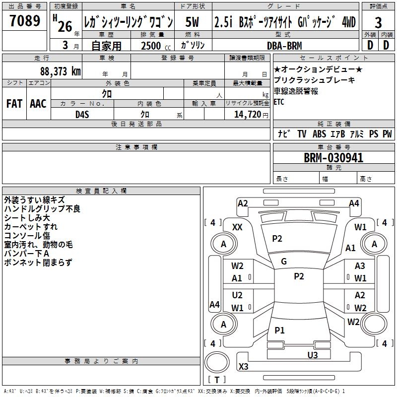 SUBARU LEGACY TOURING WAGON 2.5I B SPORT EYESIGHT 4WD - лот 7089