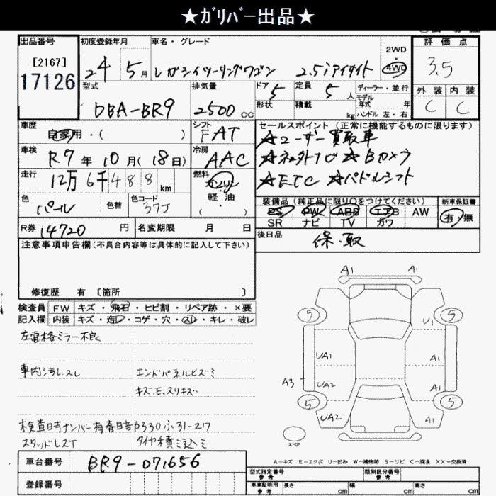 SUBARU LEGACY TOURING WAGON 4WD 2.5I EYESIGHT - лот 17126
