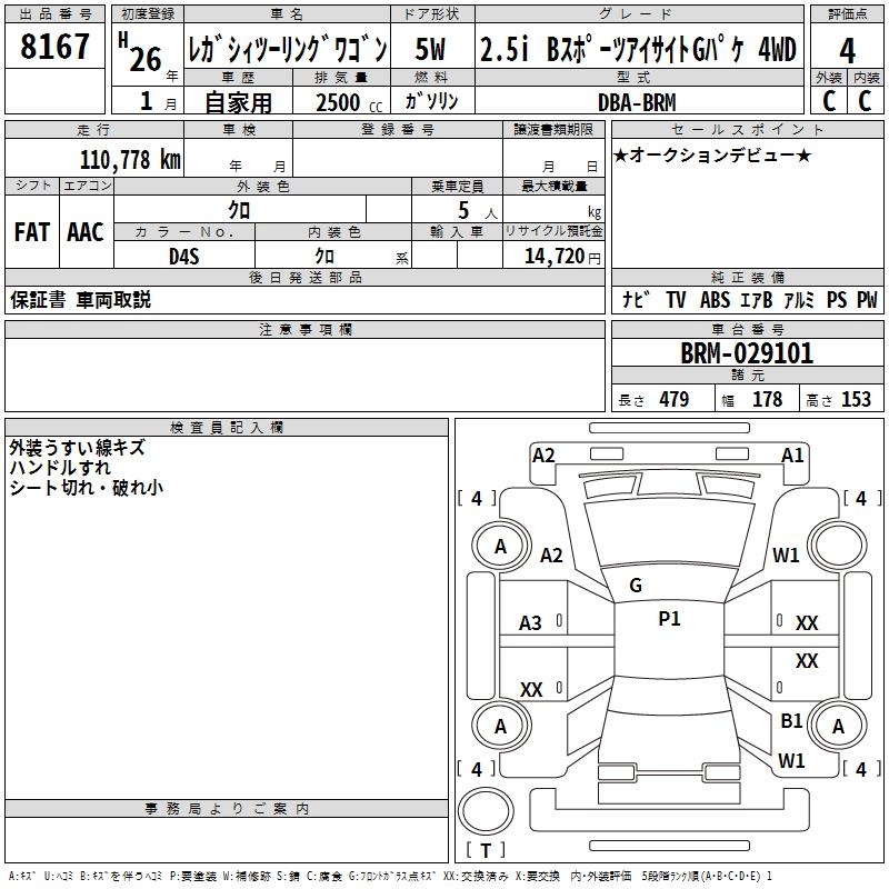 SUBARU LEGACY TOURING WAGON 2.5I B SPORT EYESIGHT 4WD - лот 8167