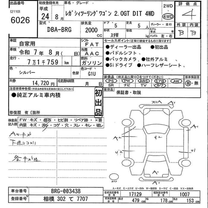 SUBARU LEGACY TOURING WAGON 2.0GT DIT 4WD - лот 6026