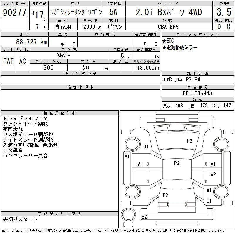 Все аукционы SUBARU LEGACY TOURING WAGON