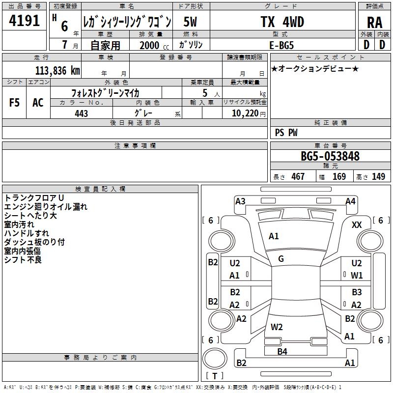 SUBARU LEGACY TOURING WAGON TX 4WD - лот 4191