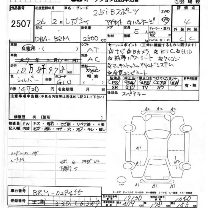 SUBARU LEGACY WAGON 2.5I B SPORT EYESIGHT G PACKAGE - лот 2507