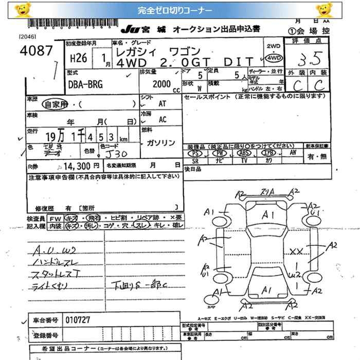 SUBARU LEGACY WAGON 4WD 2.0GT DIT - лот 4087
