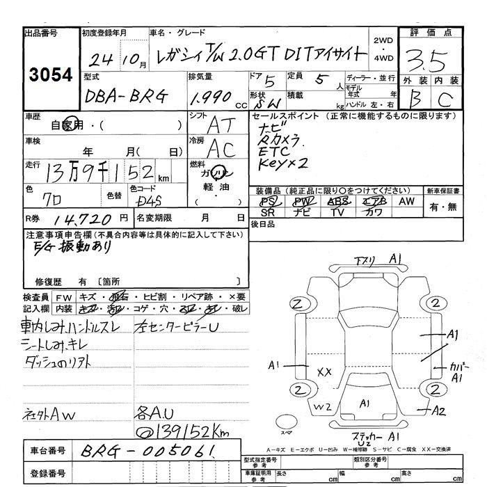 SUBARU LEGACY WAGON 2.0GT DIT EYESIGHT - лот 3054