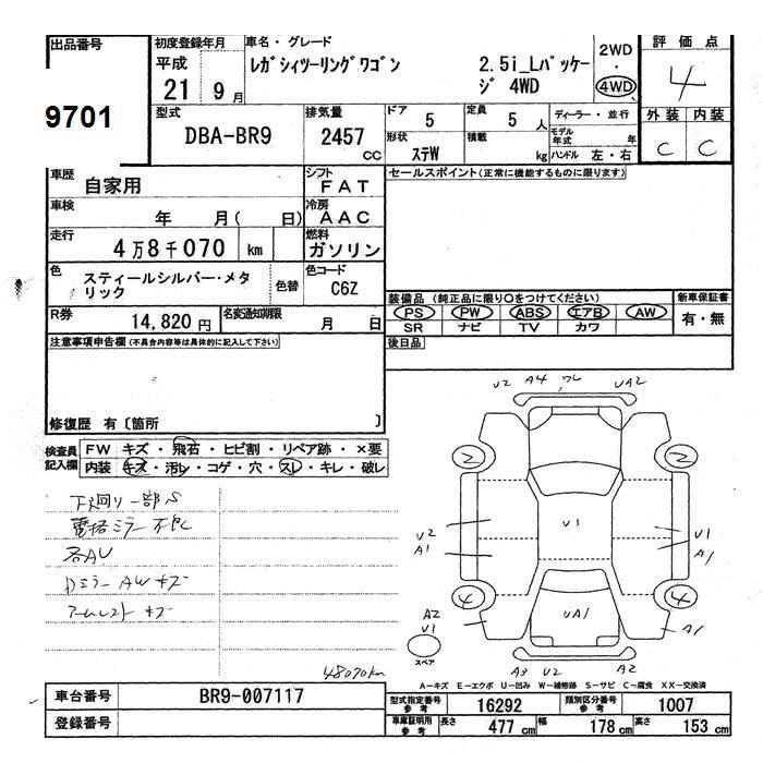 SUBARU LEGACY WAGON 4WD 2.5I L PACKAGE - лот 9701