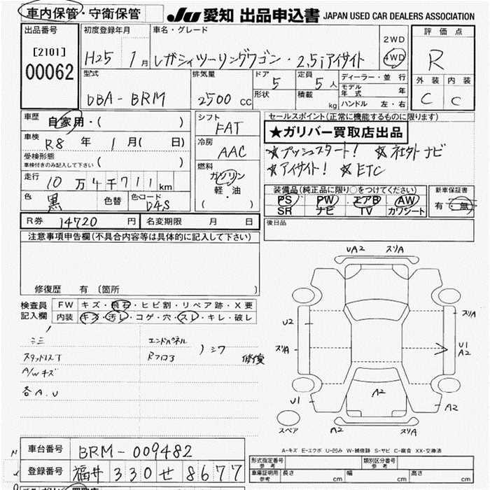 SUBARU LEGACY WAGON 2.5I EYESIGHT 4WD - лот 62