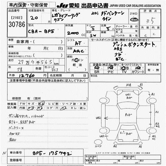 SUBARU LEGACY WAGON 2.0IADO VANTAGE LINE 4WD - лот 30786
