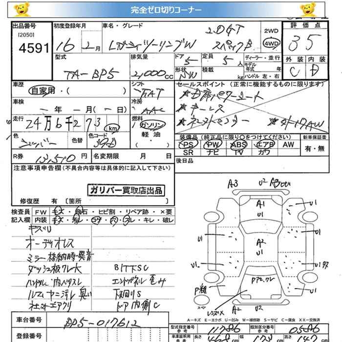SUBARU LEGACY WAGON 4WD 2.0GT SPECIFICATIONS.B - лот 4591