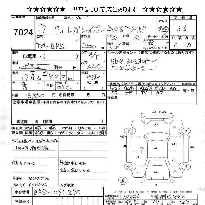 SUBARU LEGACY WAGON 4WD 2.0GT TURBO - лот 7024
