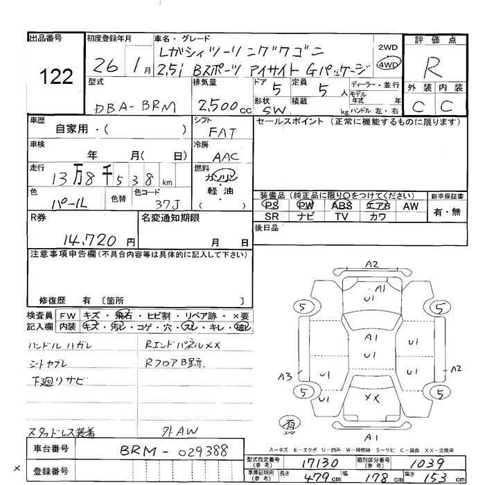 SUBARU LEGACY WAGON 2.5I B SPORT EYESIGHT G PACKAGE - лот 122