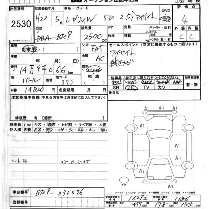 SUBARU LEGACY WAGON 2.5I EYESIGHT 4WD - лот 2530