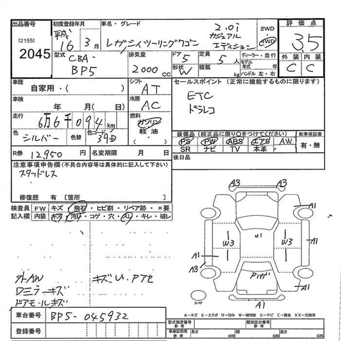 SUBARU LEGACY WAGON 4WD 2.0I CASUAL EDITION - лот 2045