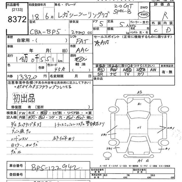 SUBARU LEGACY WAGON 4WD 2.0GT SPECIFICATIONS.B - лот 8372