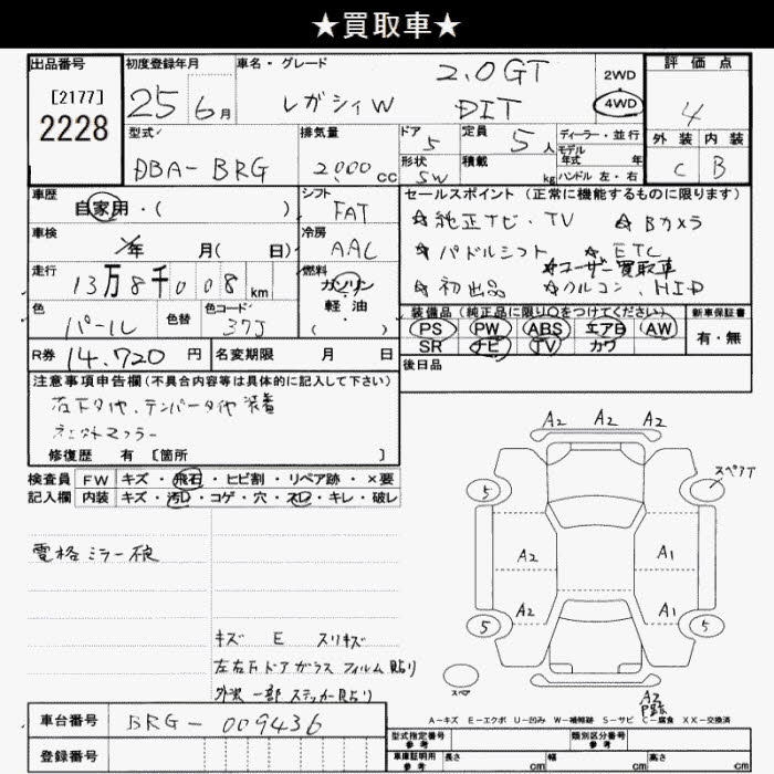 SUBARU LEGACY WAGON 4WD 2.0GT DIT - лот 2228