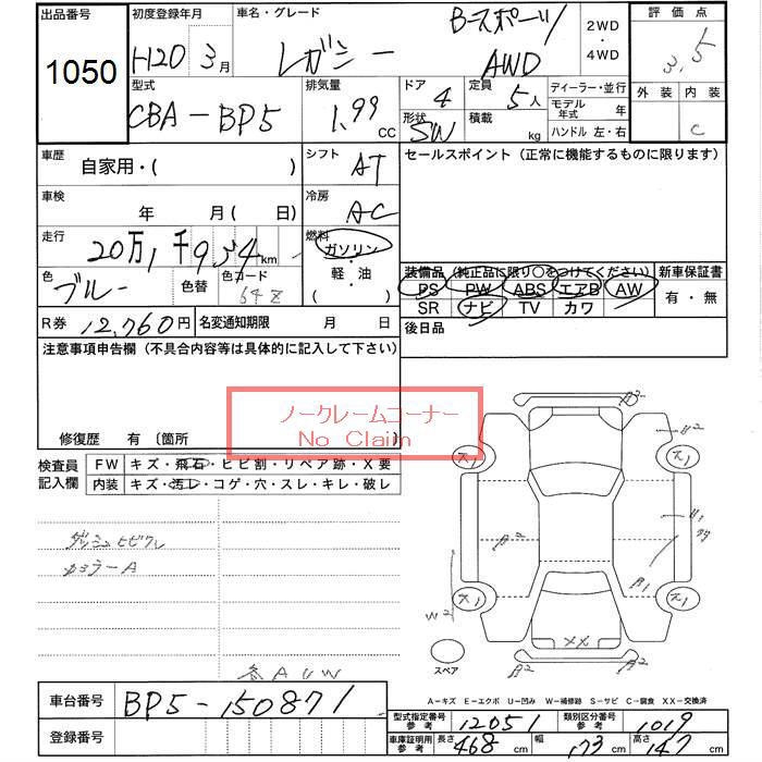 SUBARU LEGACY WAGON 4WD B SPORT - лот 1050