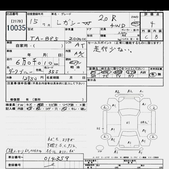 SUBARU LEGACY WAGON 4WD 2.0R - лот 10035