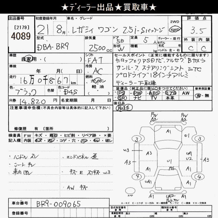 SUBARU LEGACY WAGON 4WD 2.5I S PACKAGE - лот 4089