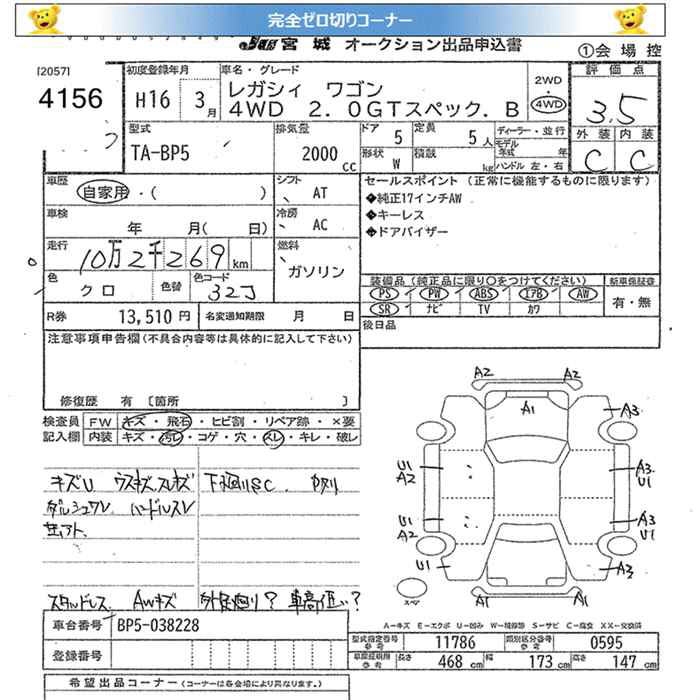 SUBARU LEGACY WAGON 4WD 2.0GT SPECIFICATIONS.B - лот 4156