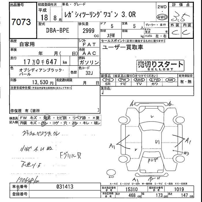 SUBARU LEGACY WAGON 4WD 3.0R - лот 7073
