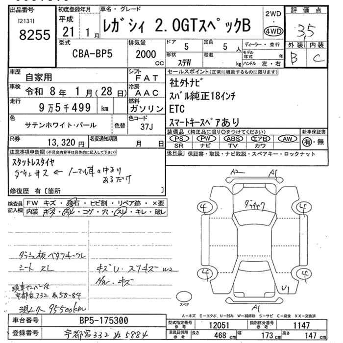 SUBARU LEGACY WAGON 4WD 2.0GT SPECIFICATIONS.B - лот 8255