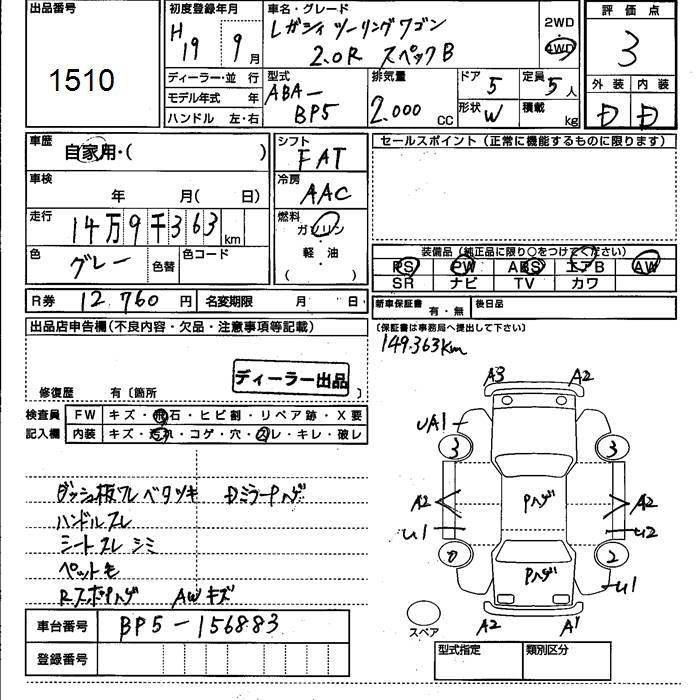 SUBARU LEGACY WAGON 4WD 2.0R SPECIFICATIONS B - лот 1510