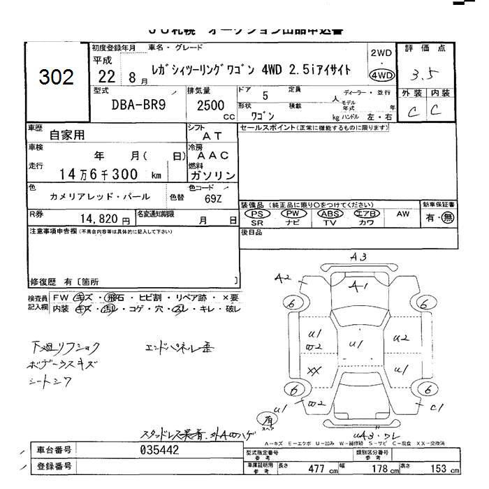 SUBARU LEGACY WAGON 4WD 2.5I EYESIGHT - лот 302