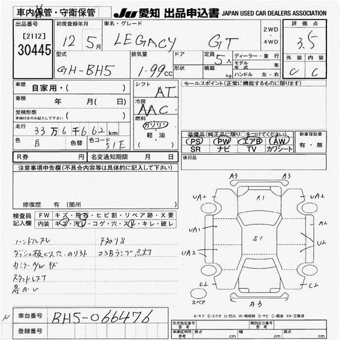 SUBARU LEGACY WAGON GT - лот 30445