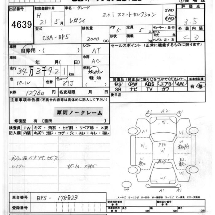 SUBARU LEGACY WAGON 4WD 2.0I SMART SELECTION - лот 4639