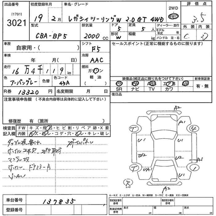 SUBARU LEGACY WAGON 4WD 2.0GT - лот 3021