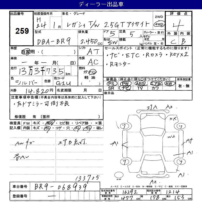 SUBARU LEGACY WAGON 4WD 2.5GT EYESIGHT - лот 259