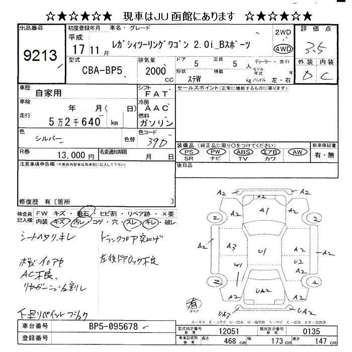 SUBARU LEGACY WAGON 4WD 2.0I B SPORT - лот 9213