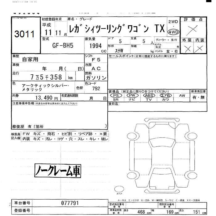 SUBARU LEGACY WAGON - лот 3011